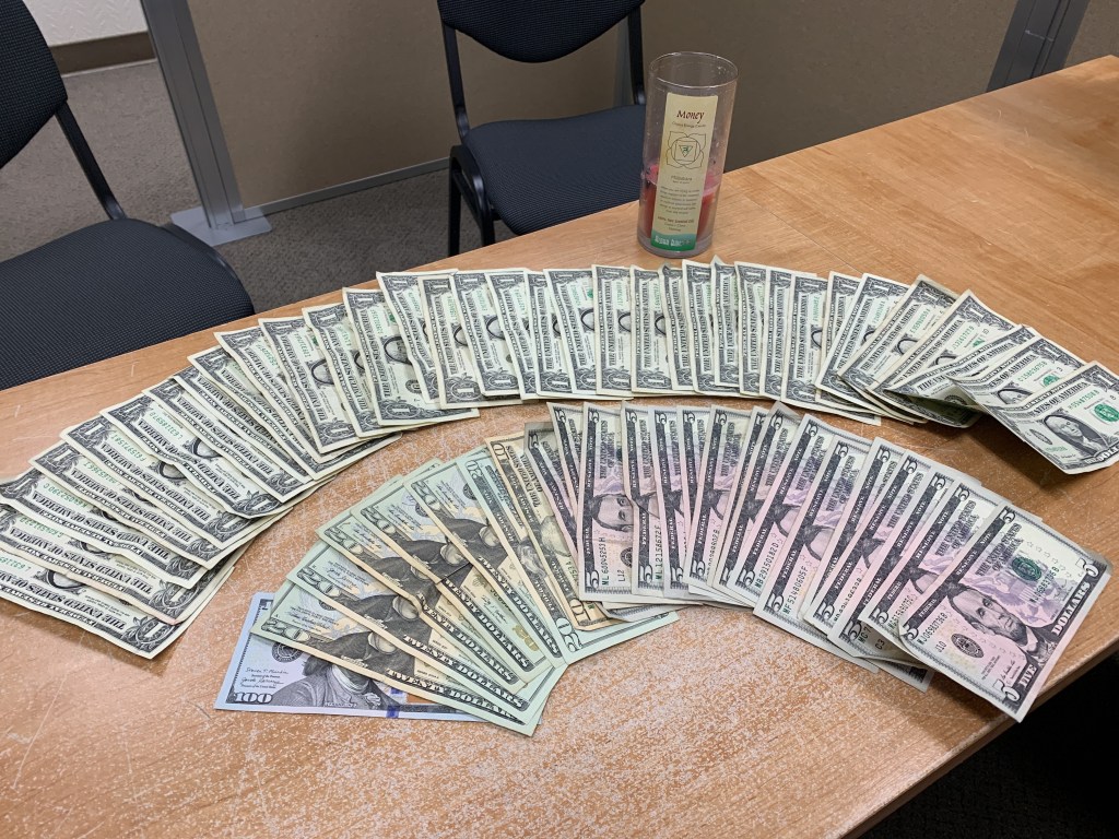 Nine days later the Divine let me know my request had been heard loud and clear. I pulled up to the first stop sign on my morning commute and was stunned to see that the road was littered with cash.